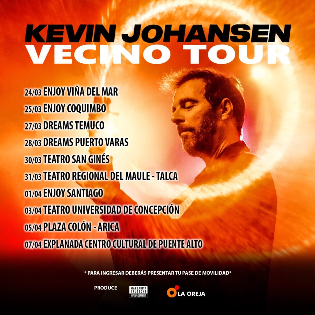 El cantante Kevin Johansen regresará a Chile en marzo para presentar su Gira “Vecino Tour”. Este será un show íntimo, está vez será una gira especial ya que se presentará a lo largo del todo el país.