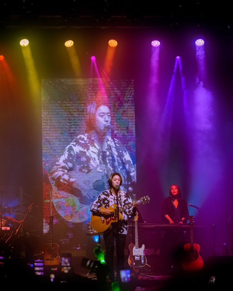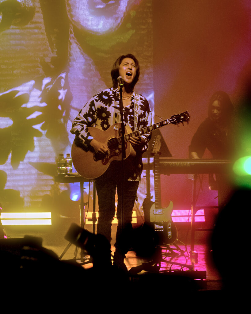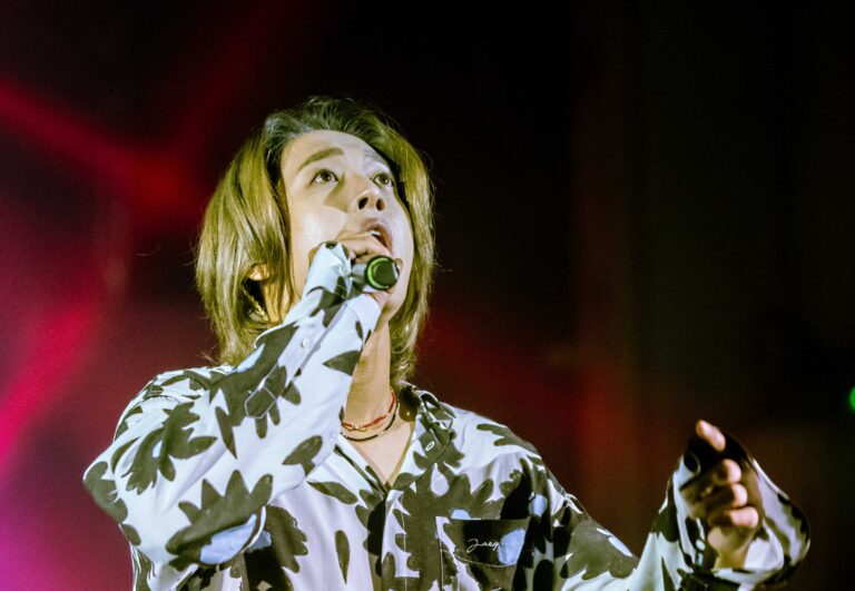 Un público ferviente de todas las edades navegaba bajo un mar de lightsticks verdes, inundando el recinto de calidez y energía. “Lead me in your way» es la encargada de iniciar la jornada, donde el vocalista, con guitarra en mano y una carismática sonrisa, hizo temblar el teatro con su perfecto dominio vocal. Con «Bark matic» y «I’m a Million» busca una mayor interacción con el público, que, ante estas poderosas canciones, danza ferviente lanzando diversas expresiones de cariño hacia el artista.