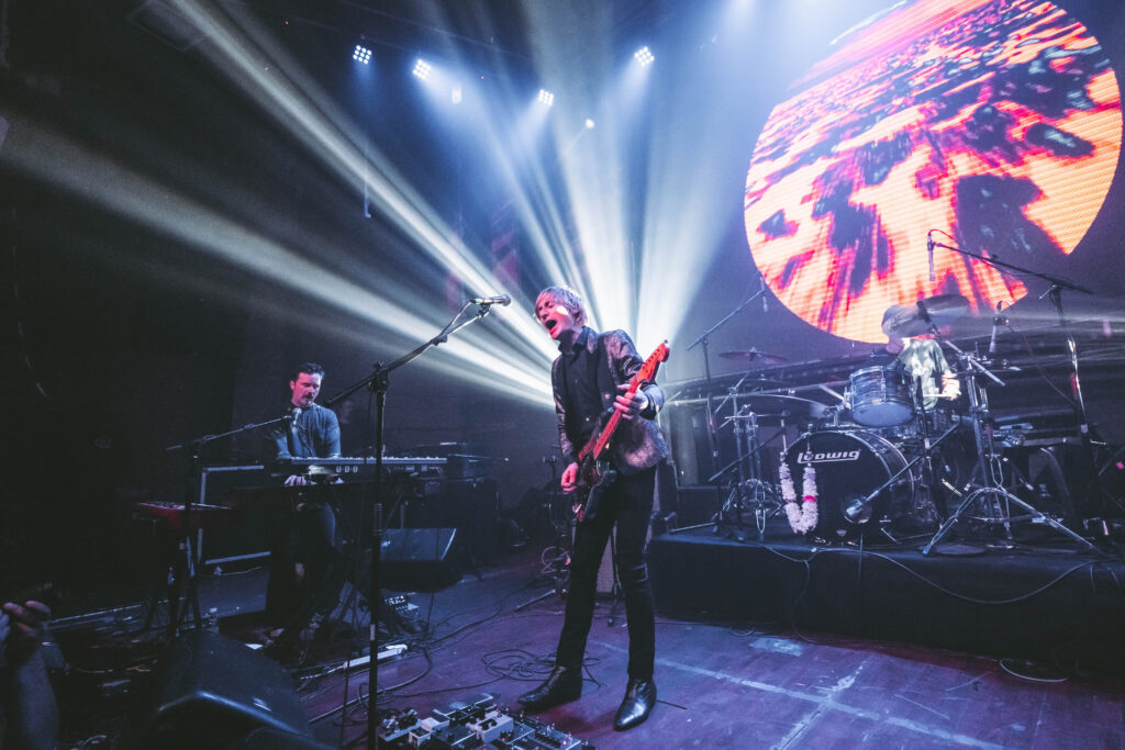 Del mismo modo, hubo espacio para homenajes a una de las influencias principales de la agrupación británica, The Beatles, quienes estuvieron presentes en dos canciones. Primero, «Gokula», dedicada al “santo patrono de la banda”, George Harrison mientras se proyectaba la imagen psicodélica del Beatle, y luego sonará  «Gimme some truth», de Jonh Lennon, presentada como una «canción de navidad, y donde su vocalista comentará si lo escuchan bien manifestando problemas con su retorno de voz, aunque eso no afectó el show. En ese sentido, me gustaría destacar particularmente el trabajo de Crispin Mills, quien marcó la energía y potencia de la banda, con una voz desgarrada que parecía que se iba a quebrar a ratos, pero que siempre le entregaba intensidad a todo el repertorio. Por otro lado, su despliegue en la guitarra fue siempre expresivo y muy contundente en su sonoridad, ayudando a dirigir a la agrupación en todo momento. Desde esa perspectiva, el espectáculo se desligó de los arreglos más producidos que encontramos en sus álbumes en estudio, y desplegó una propuesta muy directa y llena de Rock en todas sus formas.