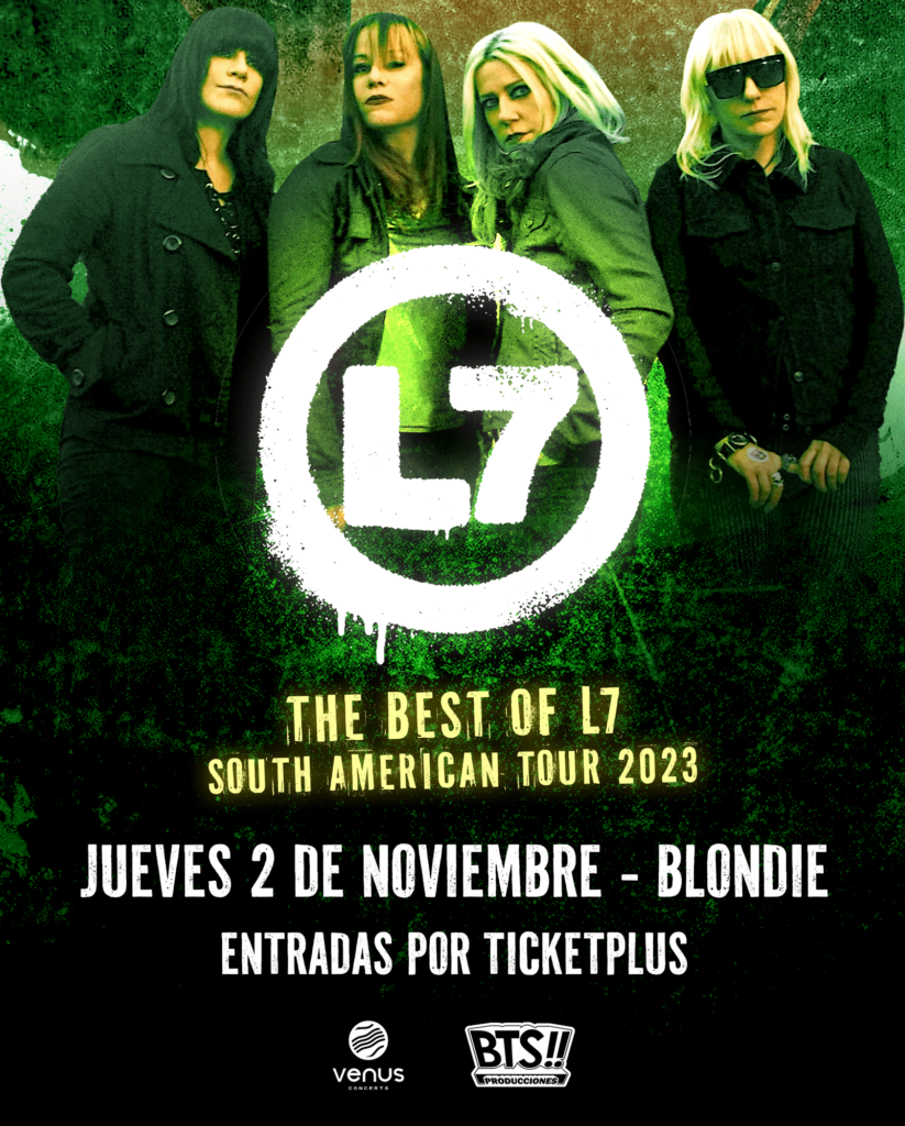 Con 37 años de trayectoria a su haber y una ferocidad que las precede, las californianas L7, conocida agrupación de Grunge / Riot Grrrl, vuelven a Chile en el marco de su gira sudamericana para presentarnos en el escenario de Blondie lo mejor de su carrera y toda su potencia.