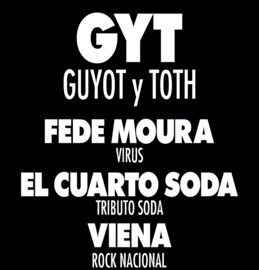 Se trata de GyT (Guyot y Toth), Virus (Con Fede Moura), Soda Stereo (junto a la banda homenaje “El cuarto de soda”) y los chilenos del grupo Viena e “Iza el Alma”. Todos formarán parte de una esperada jornada de música ochentera y que promete cautivar a los miles de fans que esperan repletar el mítico estadio de la calle San Diego.