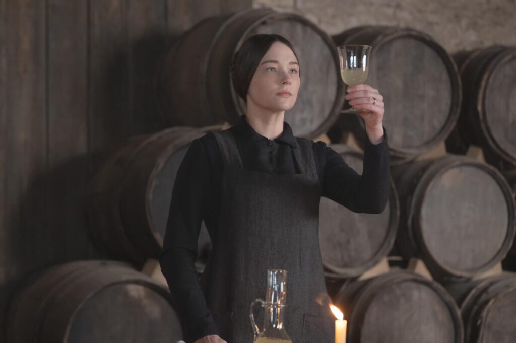 La manera de narrar es interesante, muestra dos líneas temporales, una de una Clicquot joven, aún con su esposo vivo, y otra ya viuda. Este recurso ayuda a ver la evolución de la empresaria francesa, de la violencia que sufrió, su paso a la madurez, y la manera de enfrentar el mundo. Recuerda mucho a «Mujercitas» (2019) de Greta Gerwig, una línea que muestra la vida antes de la madurez y otra en la que hay que hacerse cargo de esa madurez siendo una mujer en un mundo de hombres.
