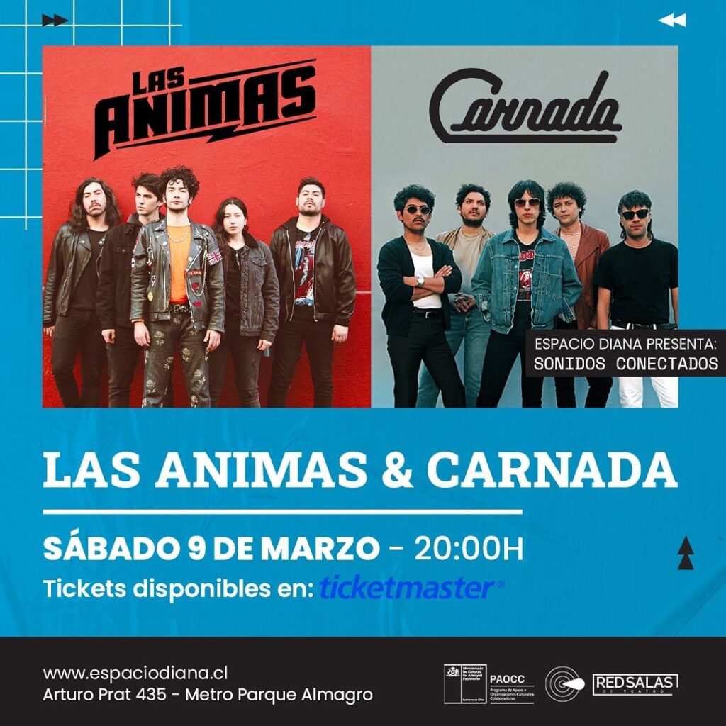 Las Animas y Carnada juntos por primera vez en vivo. Disfruta de dos grandes bandas del rock nacional el próximo sábado 9 de marzo en el Teatro Diana.