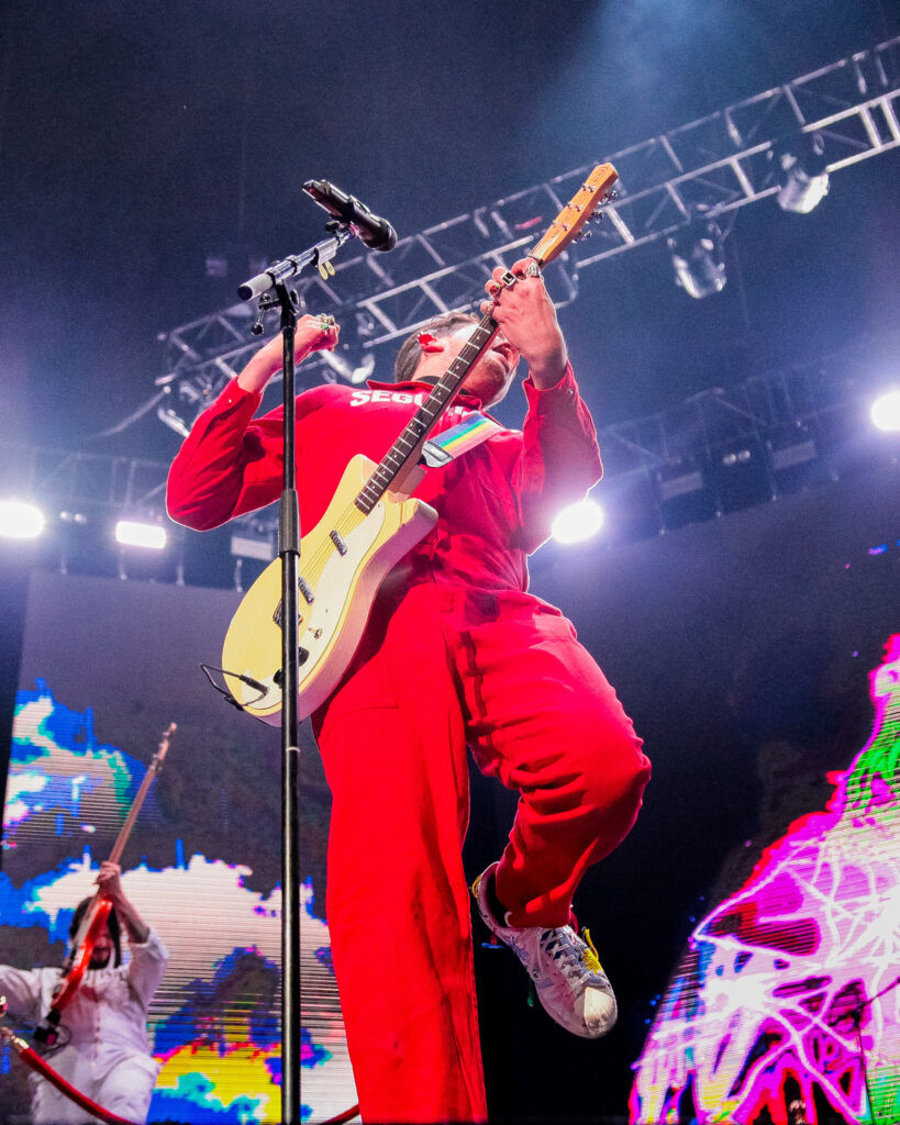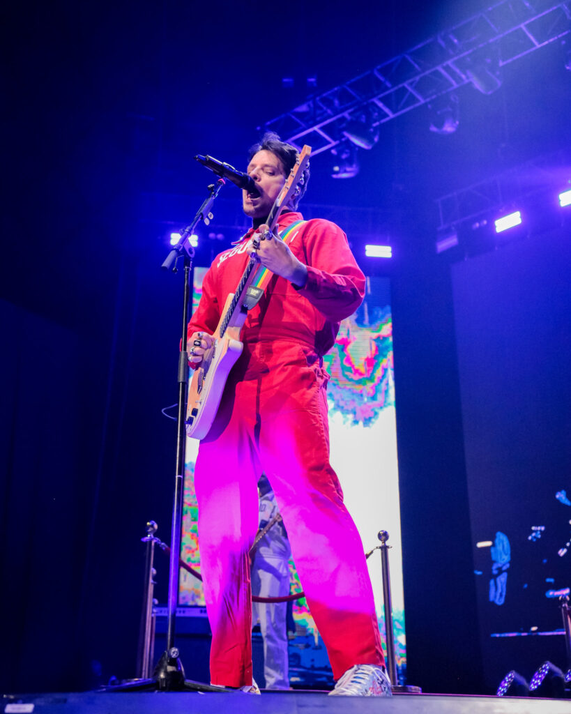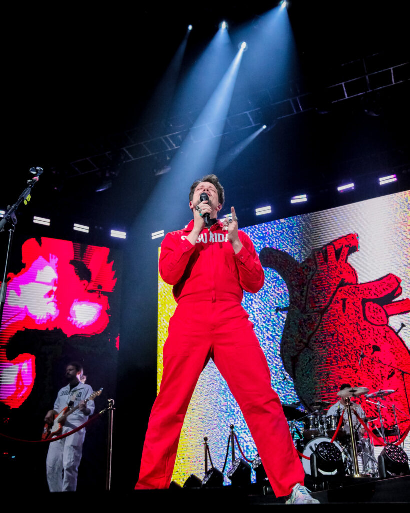 La presentación es intensa y Lasso sabe manejarse muy bien ante la audiencia, dueño de una voz potente que no decae nunca y el excelente sonido de una afiatada banda de apoyo en vivo como power trío, con batería, guitarra y bajo, apoyado de secuencias. El set sigue con canciones como la coreada «Plástico» y «Julia» para luego cambiarse de vestuario y volver a escena con un brillante traje dorado y con guitarra eléctrica de vuelta a sus brazos para la interpretación de «Dios», mientras por las pantallas gigantes se muestra una Kiss Cam, donde múltiples parejas hacen demostraciones de cariño, entre besos y abrazos, incluso la propuesta de matrimonio entre dos fanáticos del artista, lo que genera la emoción genuina del público.