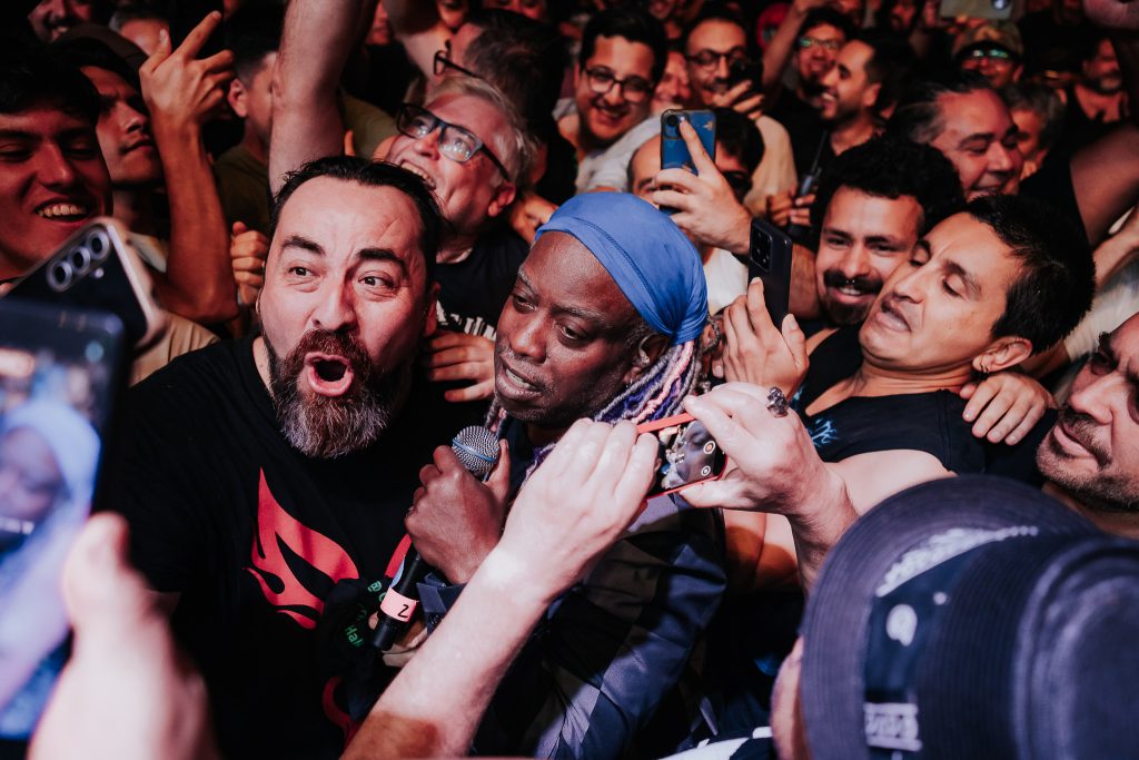Más adelante, los acordes de Vernon Reidanticiparon “Open Letter (To a Landlord)”, una pieza cargada de crítica social. Durante la interpretación, Corey Glover bajó del escenario y se internó entre el público sin dejar de cantar, avanzando entre los asistentes mientras estos lo rodeaban para estrechar su mano o abrazarlo. Fue uno de los momentos más increíbles de la noche, una muestra del vínculo que la banda mantiene con su audiencia.