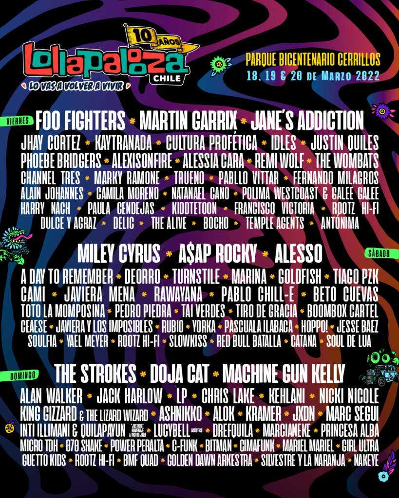 Foo fighters, Miley Cyrus, The Strokes, Martin Garrix, A$ap Rocky, Doja Cat, Machine Gun Kelly, Jane’s Addiction, Alesso, Jhay Cortez y más encabezan el cartel de celebración de la décima edición