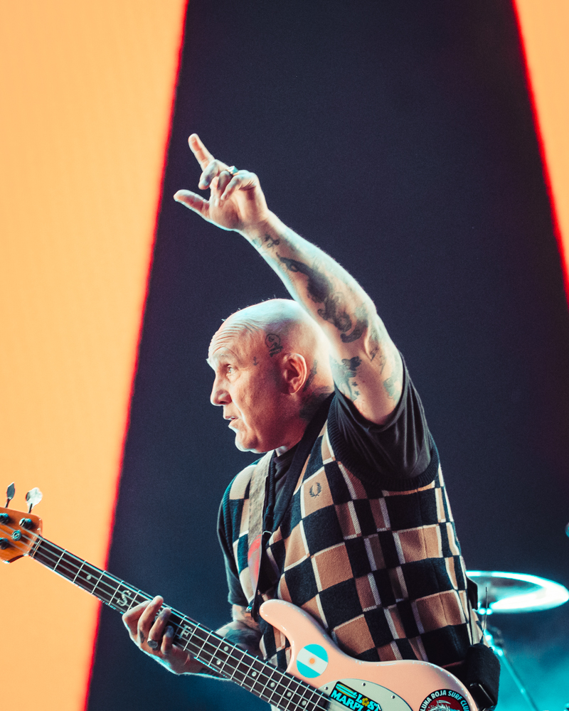 La inevitable parte subjetiva es: el local carece de mística y la distancia física y espiritual con la urbe es notoria. Los espacios huecos en las gradas y un cuarto de la cancha vacío hablaban de lo difícil de convocar a toda la claque. El piloto automático de la banda es un puñal al corazón (de alguien que no perdona la falta de pasión) y la nula mención al contexto social y político de toda la región (y de todo el continente, ¡vamos!) hacen que ese mensaje contestatario y combativo se quede en una cápsula del tiempo, en cintas de cassettes regrabados o en vhs de programas de Mtv. Es una fiesta, lo sé, y en la mesa de la casa de papá no se habla de política. Me queda claro. Hay que pensar en cómo volver a casa mientras se baila y se busca conectar con gente en sus sillas o separad@s por rejas de seguridad. No se puede bailar en tan poquito espacio. Omitir todo eso es la clave para vivir una experiencia individual en grupo, en un masivo grupo por dos horas.