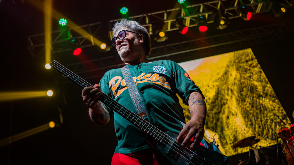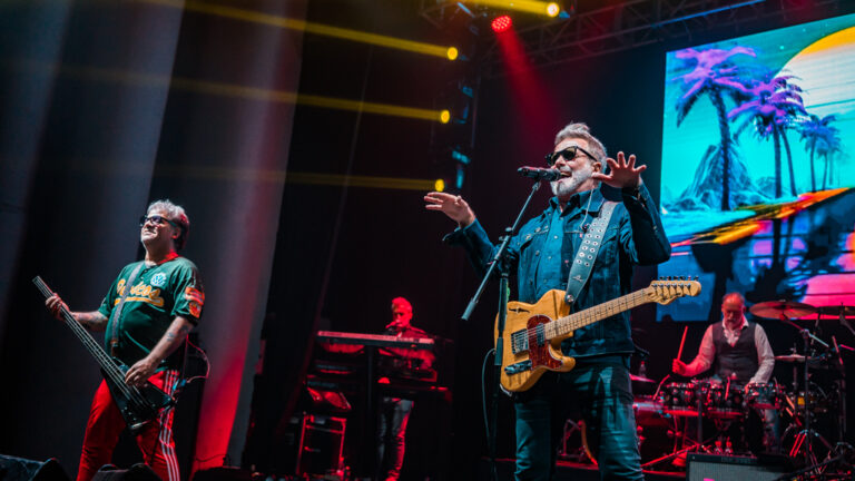 La celebración no se detiene, y entre palabras, dinámicas y mucho ritmo, la banda trasandina interpreta «Tu Cárcel», «Lindo Día» y «Lágrimas Negras» dándole pie al primer intervalo de la noche.