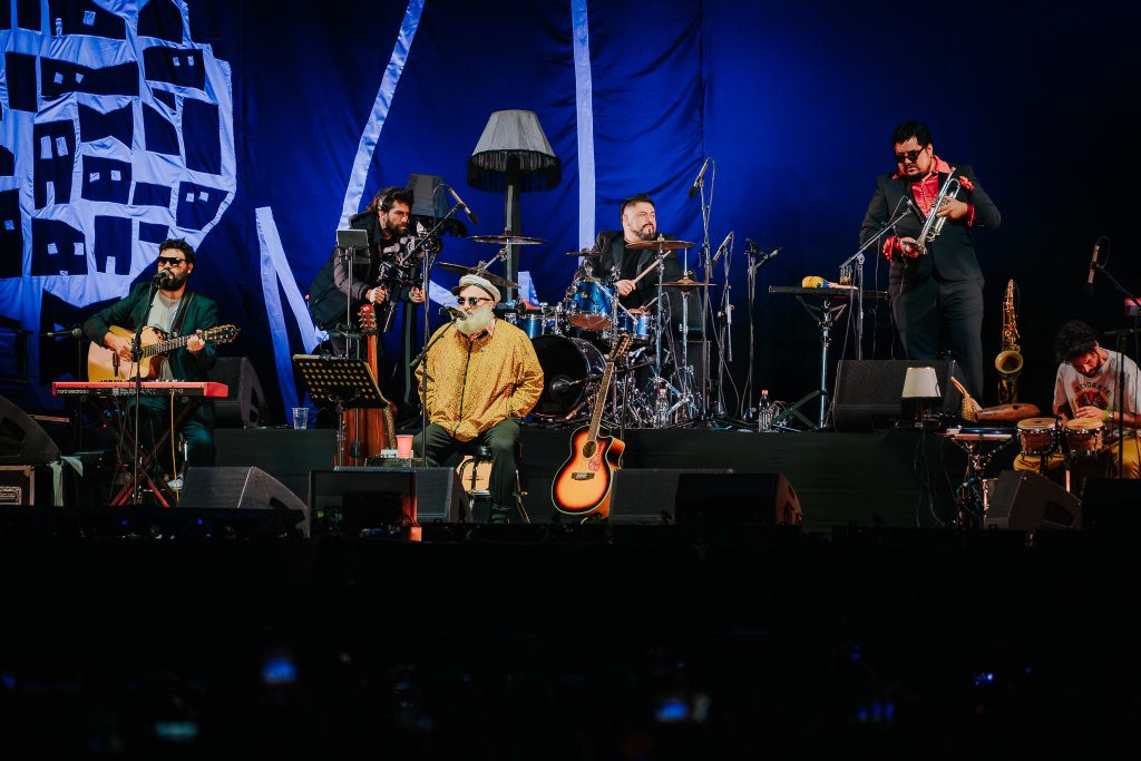 A esta altura del partido, basta mencionar la calidez sonora que imprimió la multitudinaria banda en todos los elementos e instrumentos musicales. No hay audiovisuales ni muchos juegos de luces, porque el fuego del cual estamos sentados alrededor cantando es la orgánica y pulcra música de cada uno de los integrantes e invitados que se encuentran arriba del escenario. Ampliando rangos de géneros y tocando referencias territoriales y sonoras, produciendo una superposición de música con identidad multinacional.