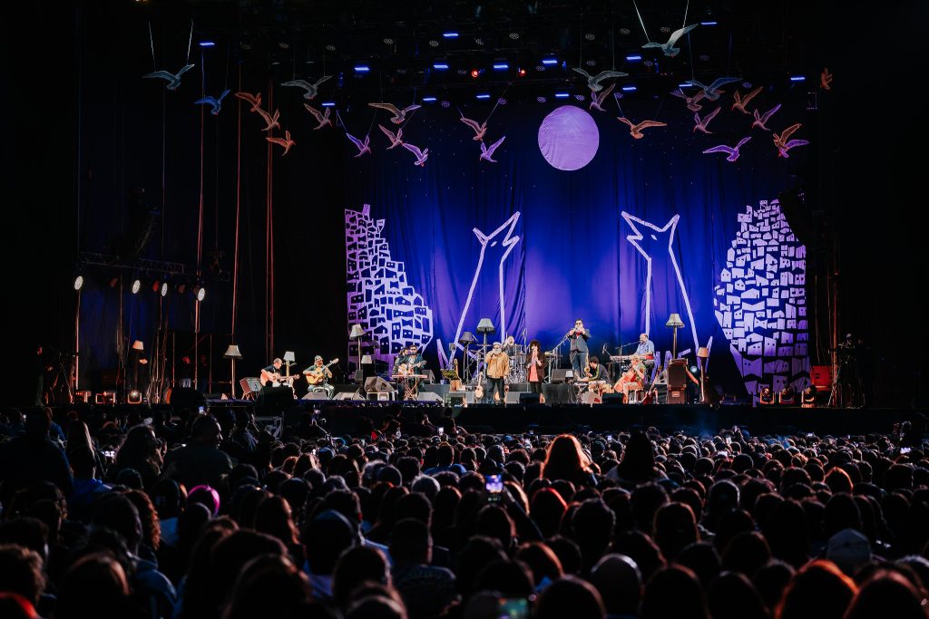 Con la imagen del memorial de los detenidos desaparecidos en las pantallas y el público vitoreando “el pueblo unido jamás será vencido”, el grupo lanzó la vibrante “Pequeña serenata diurna” de Silvio Rodríguez e “Insensatez”.