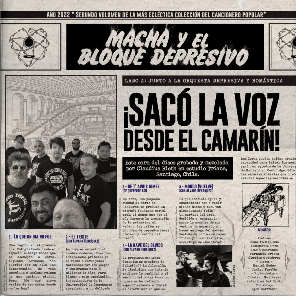 La destacada agrupación nacional, Macha y el Bloque Depresivo, presenta un nuevo adelanto del disco que lanzarán durante el primer semestre del año y que contiene un total de nueve canciones. Como parte de este material, que han denominado Lado A, se encuentran: “Lo que un día no fue”, “El triste” junto a Álvaro Henríquez, “De quererte así”, “La nave del olvido” y “Mondo (Vuelve)”, también con la colaboración de Álvaro Henríquez. Este último, es el single destacado de este lanzamiento que ya está disponible en las plataformas digitales.