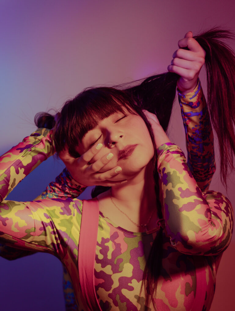 Todo esto va acompañado de una narrativa personal, impregnada de referencias y samples de animes. Gran parte de sus canciones alternan entre lo lúdico, ingenuo y lo conmovedor dentro del intrincado mundo sonoro de sus producciones electrónicas; desenterrando las profundidades de la vulnerabilidad, las conexiones fallidas y la experiencia trans.