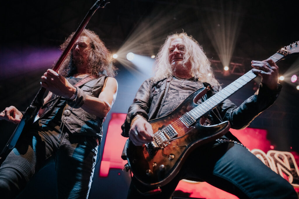 Ya en la mitad del line up, otros veteranos de la escena y considerado por algunos, parte de la nueva ola británica del heavy metal, Saxon pisaba fuerte el escenario para un fenomenal repaso por su trayectoria. Esto sí que era para los más veteranos, y aunque había un público transversal, todos sabemos la historia que tiene a cuestas una banda como Saxon. Y es que, no hay metalero que no haya tenido algún parche de algún tamaño de la banda o que no los reconozca como la leyenda que son. Dicho sea esto, “Hell, Fire and Damnation” inició los fuegos con ese heavy clásico para un repaso por todas sus etapas: “Strong Arms Of The Law”, “Motorcycle Man”, entre otras, adornaron el set en medio de apoyos visuales que mostraban todas las portadas de los discos de Saxon rememorando su camino recorrido a través del metal.