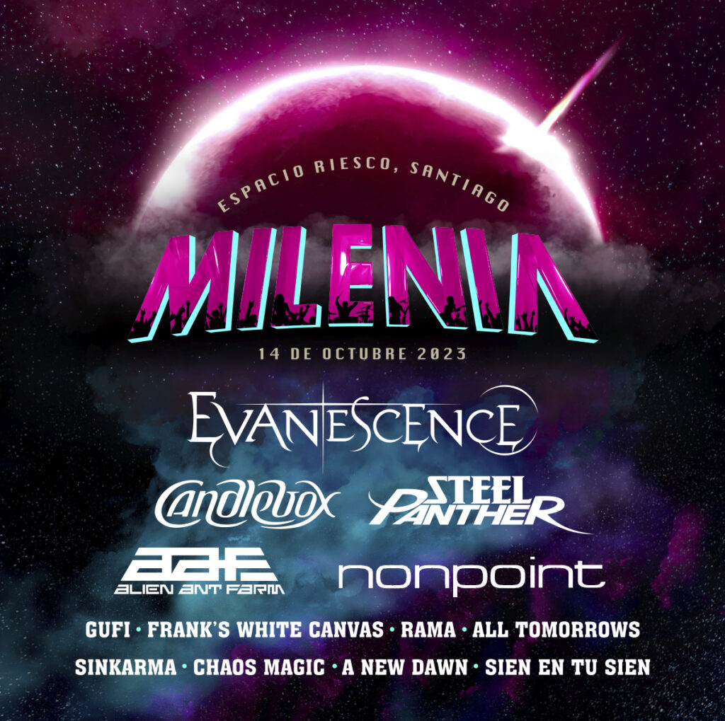 Este próximo sábado 14 de octubre se llevará a cabo la primera edición del festival Milenia en Espacio Riesco. A los ya confirmados cabezas de cartel, Evanesence Candlebox, se suman los grupos Alien Ant FarmSteel Panther y Nonpoint.
