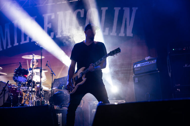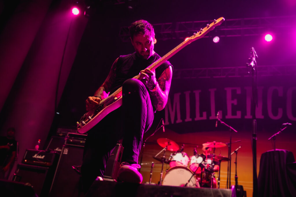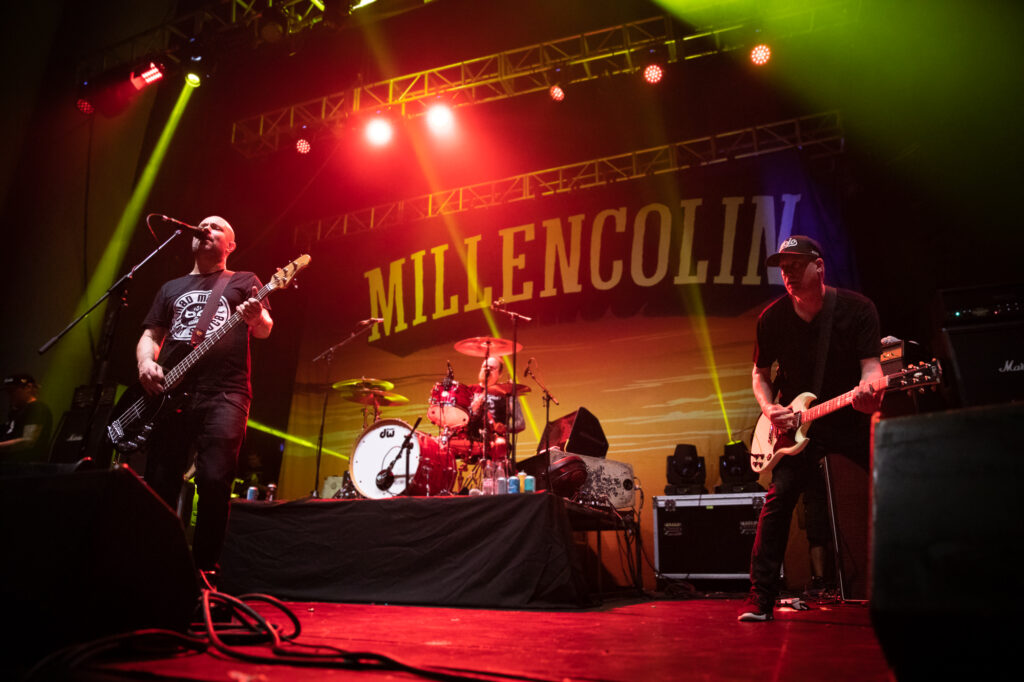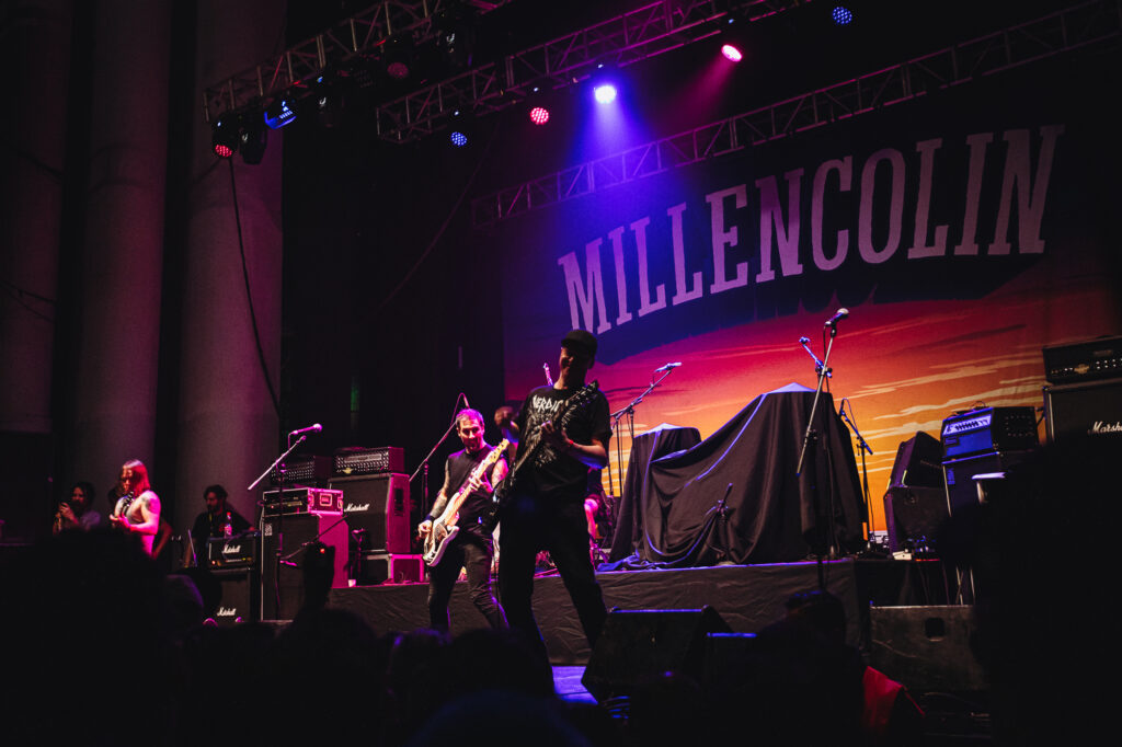 Los asistentes ya estaban listos para el final de la noche, y la osadía llevó a gente a bajar desde el palco a gran altura para llegar a cancha, mientras el resto les recibía abajo, con alegría de todos quienes estaban presentes haciendo más llevadera la espera. Así a las 9:20 en punto comienza la intro de Millencolin, y se siente la energía en el público. La banda salió sonando mucho más fuerte que sucesora, con un inicio más rockero gracias a «Kemp», de «Home from home» (2002). Luego de un ceacheí por parte de su vocalista, suena el primer tema que enciende realmente al público, «Bullion», canción de su clásico «Life on a plate» (1996). Ya a estas alturas el lleno era absoluto en Coliseo, y el calor humano ascendía junto con la energía del show, además de irse puliendo el sonido general de la banda. Es imposible negar que el factor nostalgia inundaba en los asistentes, recordando épocas más adolescentes, pero se notaba un público trasversal.