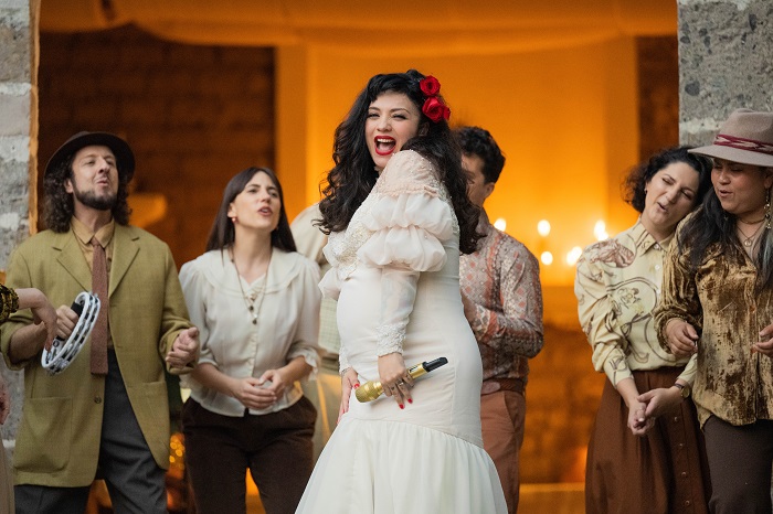 En las imágenes podemos disfrutar a Mon Laferte engalanada con un vestido rojo en el centro del escenario, acompañada por las integrantes de la banda establecida en Santa María Tlahuitoltepec y que está dirigida por su fundadora Leticia Gallardo.