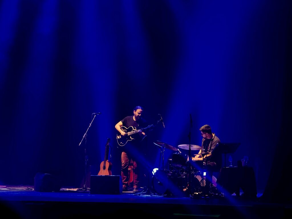 La presentación comenzó con un solo de percusión de Rodrigo Recabarren. Uno a uno fueron sumándose los músicos: Sebastián Almarza en el piano, demostrando su destreza apenas sentó las manos en el instrumento; luego Federico Faure en el contrabajo; y finalmente Nano Stern, recibido por una ovación cálida y generosa. Detrás de ellos, la palabra “Refugio” iluminaba el escenario como una invitación.