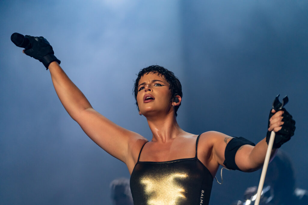 Suena «Sana Sana», quizás la canción más oscura y sucia del disco, todos corean “hip con el hip” que retumba en nuestros oídos, tal y como si estuviéramos bajo el agua y cuando es el momento de salir a la luz para respirar, nos atrapan los primeros beats de «Buenos Aires», que nos recuerdan la melancolía del pasado y nos reconfortan como un rayo de luz. Momentos de baile y seducción cuando aparecen rosas, las recoge con gracia para recorrer su cuerpo con ellas y lanzarlas al público antes de interpretar «Puro Veneno». Baja hacia la cancha para tocar a su fanáticos, repartir besos, recibir amor, y hasta un piquito en la boca de una chica. Vuelve al escenario para cantar «La Despedida», cover de Daddy Yankee
