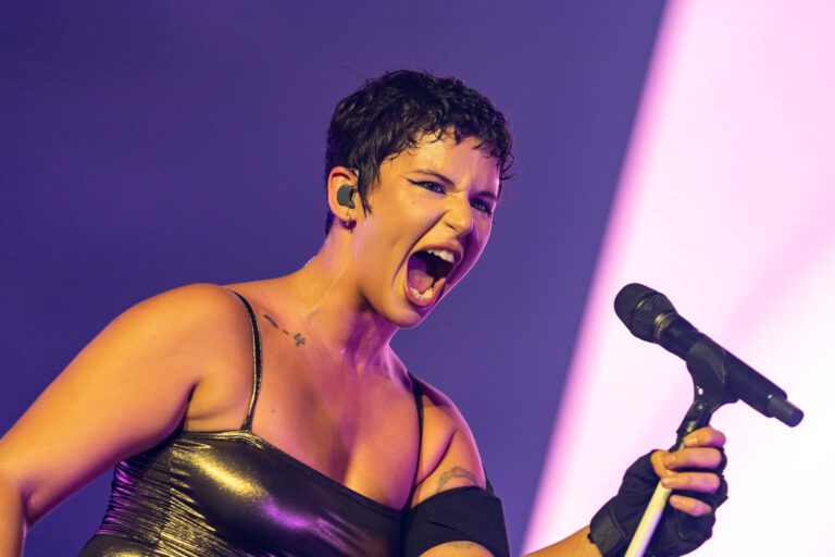 Pocas palabras pero sabias, para saludar a su público: “El amor nos cura, nos protege, nos enseña, gracias por venir a compartir conmigo” expresó para continuar con los éxitos «Ateo» y luego su popular «Mafiosa» acompañada de su espectacular banda con quienes coquetea, mientras recorre la tarima con mucha sensualidad y fuerza. Luego de este momento explosivo, descansamos en la voz de Nathy con las baladas «Arrorró» y «Viernes 3AM», original de Serú Girán