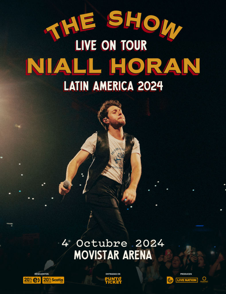 El destacado cantante Niall Horan llegará a Chile con la gira más grande de su carrera hasta el momento, «THE SHOW» LIVE ON TOUR 2024. El cantante promete interpretar canciones de sus tres discos solistas, incluyendo «The Show» (2023), su último lanzamiento. El concierto se realizará en Santiago el 04 de octubre en Movistar Arena.