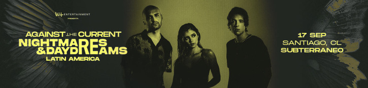 El Club Subterráneo recibirá calurosamente a la agrupación americana Against the Current que regresa una vez más a Chile este 17 de septiembre como parte de su gira mundial. Luego de volver a ser una banda independiente al terminar su contrato con su sello discográfico Fueled By Ramen en agosto del año pasado, los neoyorquinos lanzaron su single «Blindfolded» iniciando con pie firme una nueva etapa en su carrera.
