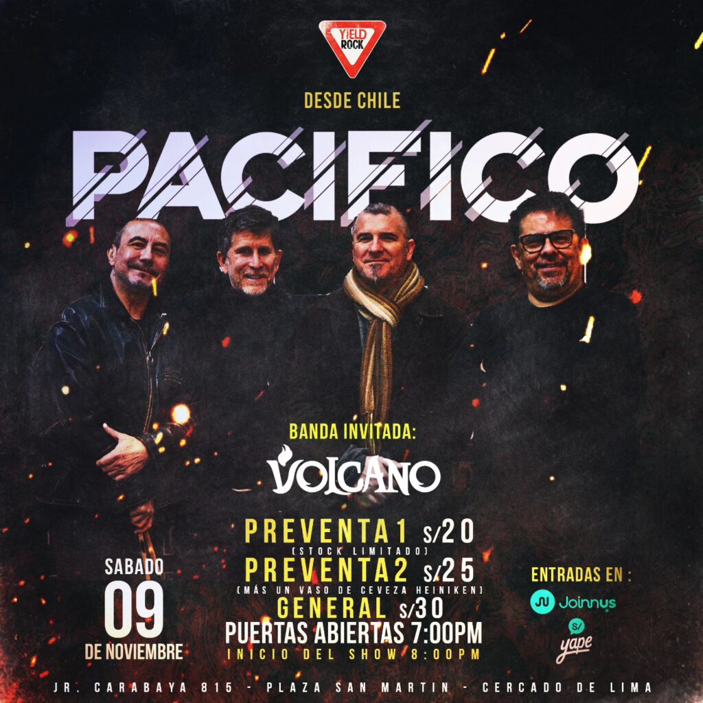 Este noviembre, la banda nacional Pacifico tiene una agenda llena de eventos emocionantes. El sábado 09 de noviembre, en Lima, Perú, la banda se presentará en YIELD, epicentro del Rock limeño, junto a VOLCANO, uno de los referentes locales del Rock Progresivo.