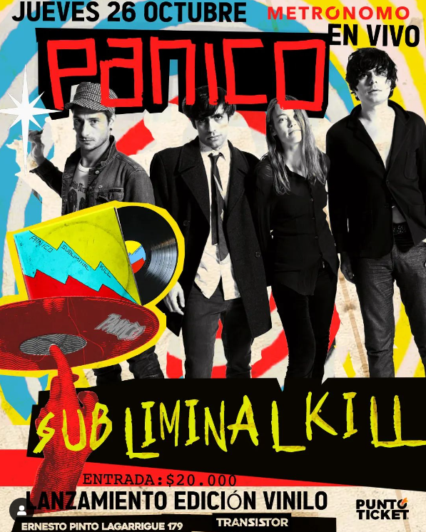 Pánico, el grupo liderado por Edi Pistolas (Eduardo Enríquez ) y Carolina Tres Estrellas (Caroline Chaspoul) uno de los estandartes del rock independiente nacional, vuelve a Santiago a tocar de manera íntegra su aclamado disco «Subliminal Kill» en Sala Metrónomo el jueves 26 de Octubre.