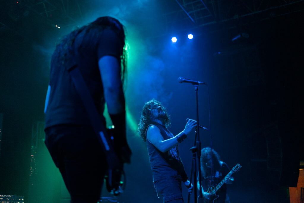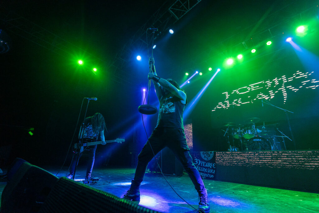 Hoy la vorágine compuesta por la muchedumbre del público, eufóricos por el pronto inicio del concierto, fue absorbida por un cósmico agujero de soledad llamado Poema Arcanvs. La banda, tan potente como enigmática, nos condujo por los pasajes más ínfimos y solitarios del cosmos en un viaje astral por la inmensidad de «Stardust Solitude», siendo la inicial su homónima para pronto tumbarnos con «Orphans». La perpetuidad sonora persiste a merced de las distorsiones y el protagonismo del bajo en «Haven».
