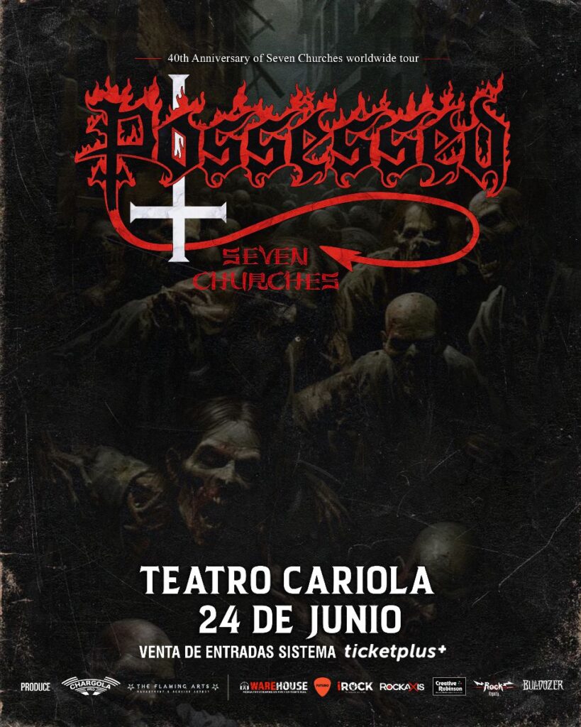 ¡Así es! Possessed, agrupación pionera en el death metal, regresará a nuestro país en el marco de una nueva gira latinoamericana que pasará también por países como Honduras, Costa Rica, Brasil, Argentina y México. Pero esta ocasión será muy especial, ya que volverán a la región para celebrar nada menos que los 40 años del emblemático “Seven Churches”, álbum debut de los estadounidenses.