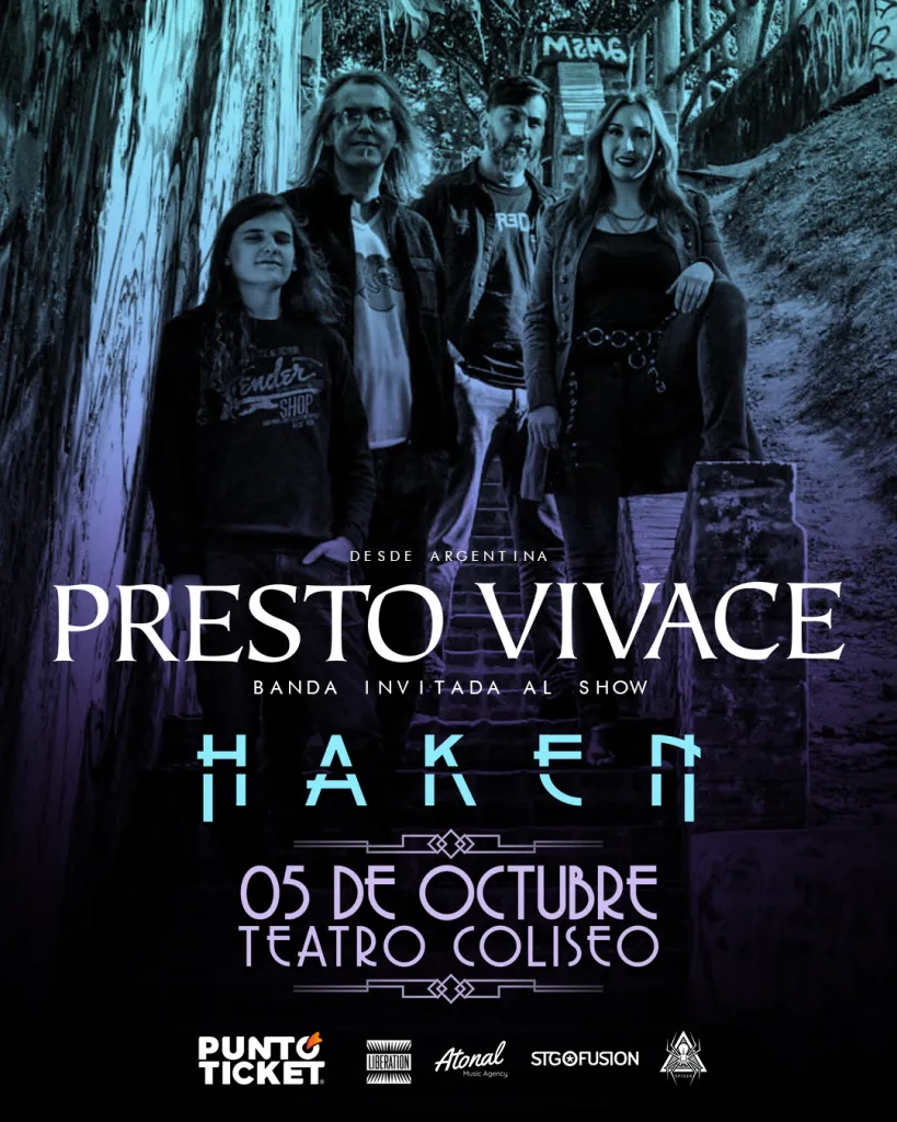 Con más de 25 años de trayectoria, Presto Vivace es uno de los estandartes del Progresivo argentino. Actualmente presentan una renovada formación que suma a Brunella Bolocco Boye en la voz, junto a Marcelo Pérez Schneider en bajo y programación, Luciano Pérez Schneider en guitarra y Martín Pass en batería. Se aprestan a lanzar su octavo disco titulado Inmanencia, el cual promete convertirse en un importante nuevo hito al ser el primer álbum en que cuentan con una voz femenina.