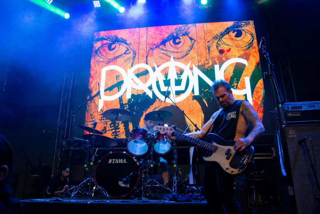 Finalmente, pasadas las 8:30, sale a escena Prong, que, a pesar de ser una banda difícil de clasificar, se presentó llena de identidad, y nos regaló uno de los mejores shows de metal en lo que va del año. Luego de una breve intro abrirán su presentación con «Test», del ya nombrado «Cleansing» con ese sonido cercano al Groove Metal, y que anunciaría que sería un set apoyado en sus discos más antiguos, mientras el público de a poco iba ocupando gran parte de la cancha. Ya en la primera intervención con los y las asistentes por parte de su líder y fundador, Tommy Victor (único miembro estable en la banda), el «conchadesumadres» fue una inyección de energía para todos y todas quienes presenciaban el show. Continuando con su clásico «Whose fist is this Anyway», otro de los cortes tomados de su álbum del 1994, se genera el primer momento de público encendido. Sus riffs muestran un Power trio afiatado, bajo la tutela de Victor en voz y guitarra, llenando el espacio con riffs filosos y la banda martillando detrás. Ya en «Disbelief», canción tomada de su primer EP, invitó al primer moshpit, en un tema furioso de Hardcore vieja escuela. «Beg to differ» nuevamente nos llevó a los riffs pesados y machacantes, situándonos en plenos años noventa.