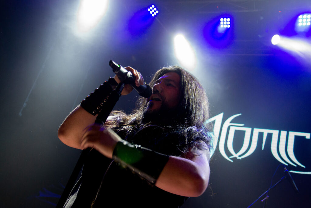 El espectáculo comenzó a las 18:30 en punto con el primer telonero de la jornada, los nacionales Atomic Genocide, quienes se presentaron con una propuesta de Heavy y Speed Metal en español, sostenida en una clásica formación de dos guitarras. Acompañados por algunos problemas menores de acoples que no perjudicaron su show, mostraron su propuesta ante un público considerablemente minoritario y que parece ser la tónica en algunos de estos conciertos. Mientras lentamente comenzaban a ingresar algunos asistentes, luego de una sencilla intro de piano, abrieron con «Por el metal», acelerado corte Speed metal de potente sonido. Con una buena puesta en escena y una voz clásica, certera en los graves y potente en los agudos, continuaron su set con «Hijos del acero», un corte heavy metal a la vieja usanza. El doble pedal a toda velocidad llamó a «Días desiertos», tema en el cual jugaron con una estructura más intrincada y moderna, aunque manteniendo la sonoridad, incluso incorporando blast beats. Para ir cerrando su presentación, le siguió «Águila de la soberbia», con una propuesta un poco más agresiva y pesada, y concluyendo con «Escuadrón bioterror», que mantuvo la tónica acercando su sonido a un Thrash de fines de los ochenta, marcando el fin de su presentación.