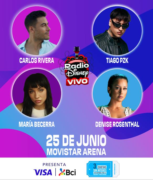El show combinará un formato original de experiencias para el público que interactuará con los contenidos propios de la Radio, del show y con los mismos artistas. Con el clima festivo y emotivo característico de Radio Disney Vivo, el escenario contará con los shows de Carlos Rivera, Tiago PZK, María Becerra y Denise Rosenthal.