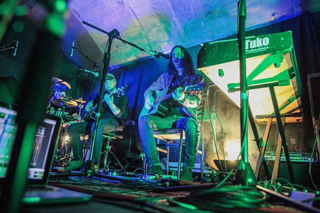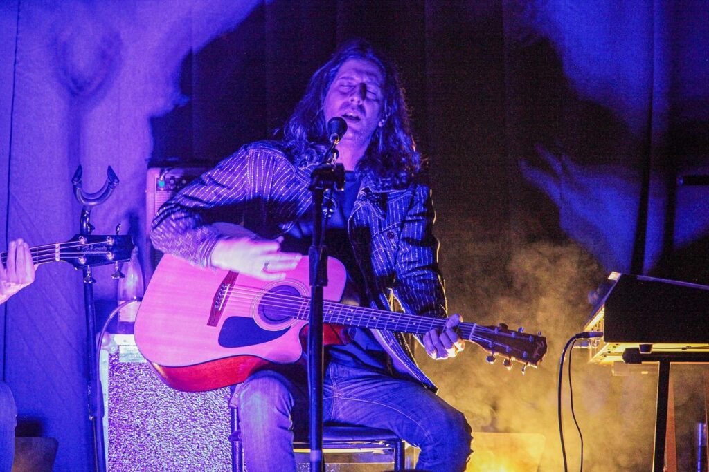 En la parte final del set, un ambiente ensangrentado, azulino, amplificando las voces en los ramales que surgen de las voces ocultas entre la madera de las mesas, una conjunción de almas en su estado natural: música en vivo.