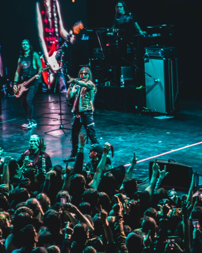 Barilari dedicó unas palabras al poder que tiene el rock para unir a la banda y al público, como preámbulo a “Rock es rock!”, otro tema de su EP 2024. Durante la interpretación, aprovechaba los breves lapsos entre canciones para hidratarse con una misteriosa copa que adornaba el escenario, como un cáliz que parecía transferir inmortalidad a su increíble voz.