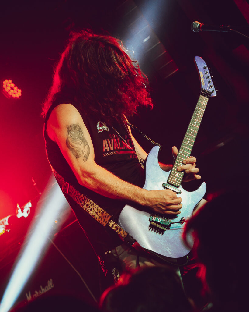 Los encargados de abrir la noche fueron los nacionales de Loud Solution, banda fundada en Santiago y que tiene tintes Hard Rock de los ’80. Compuesta por Bo Seeder (voz, bajo), Nixx Loud (guitarra, coros y composición), Chris Moore (guitarra) y Sir Vincent Morgan (batería), lograron precalentar motores entusiasmando al público con vitalidad y sonido claro. Canciones como «Not Provided», «City of Pride» y «Past Dark Nights» nos regalan un viaje al pasado, riffs rítmicos y buenas melodías vocales. Según cuentan, se formaron durante el período de pandemia con la finalidad de crear este proyecto que rescatara los sonidos de épocas de tiempos pasados. A pesar de que el público esperaba con ansias el plato principal de la noche, pedían a coro “otra” canción luego de que se despidieran, algo que siempre es buen indicio del disfrute de la audiencia y de la vibra previa que dejan los teloneros sobre un escenario.