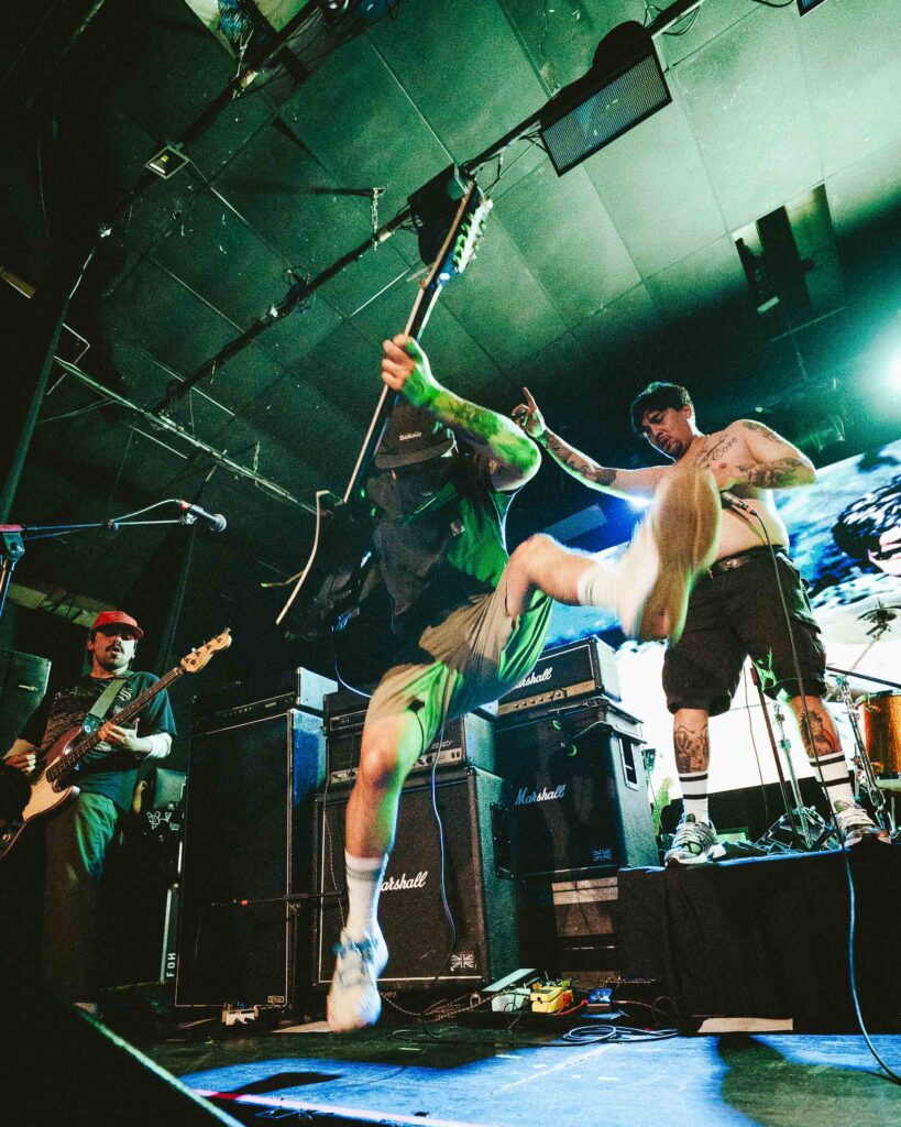 De manera puntual y con la rabia en el ambiente, los invitados de la noche Mano de Obra encendieron las primeras antorchas de la jornada. Desde la periferia norte y con más de 10 años en la escena local, el cuarteto descargó un bloque de concreto de pura ira callejera. Con un sonido directo, crudo y sin pedir permiso, Mano de Obra se ha convertido en una de las grandes apuestas nacionales por su fuerza, honestidad y pasión. Con show enérgico y al son de “Estallar”, “Educación” y “Vienen por mi”abrieron el pit y los primeros mosh de la noche acompañados de un completo repaso a su filosa discografía. La voz de la clase obrera, de las luchas que se batallan en silencio y en los rincones más oscuros de la población, el cuarteto demostró con creces el lugar que se han ganado dentro de la escena.