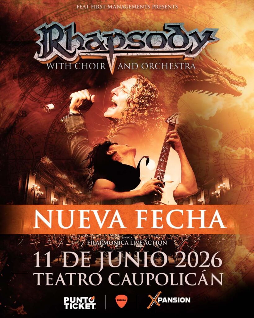 La banda italiana de metal sinfónico Rhapsody – con Orquesta y Coro, confirma su segundo concierto en Chile, el que promete ser uno de los eventos más destacados del género. La fecha elegida es el 11 de junio de 2026 también en el Teatro Caupolicán, en un espectáculo que busca consolidar su histórica y exclusiva visita a Latinoamérica con una propuesta sinfónica única, y que se suma a la fecha del 12 del mismo mes, que vendió rápidamente todas las entradas disponibles.