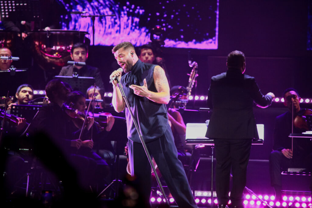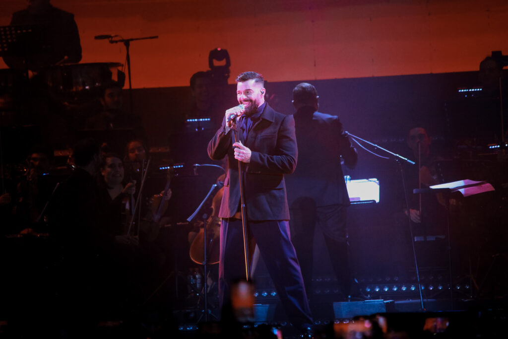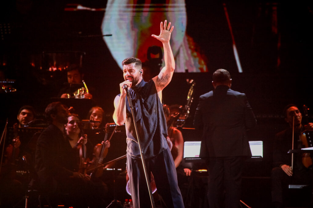 Su show fue íntimo, emotivo y lleno de clásicos, su fanclub realizó un fan action, dejando corazones de papel para todos los asistentes, quienes no dejaron de cantar cada canción y disfrutar de un espectáculo de calidad mundial. Con una elección precisa y equilibrada de canciones, entre baladas y Pop latino, la noche se prendió rápidamente y todos dejaron sus asientos para entregarse a esta propuesta Sinfónica, que rindió culto a la gran trayectoria del artista. Se destacan sus músicos, muy activos interactuando entre sí, y la Orquesta, perfecta, exquisita y muy conectada con el artista. Inteligentemente, un apoyo audiovisual muy sutil para entregar predominio a las luces y así destacar a los músicos y al maestro de Orquesta, quien fue ovacionado por el público. «La Bomba» se escuchó increíblemente y el meneo sensual de Ricky elevaba la escena a cada segundo. Otras que impactaron fueron «Con tu nombre» y «Fuego de Noche», la increíble voz de Ricky y su estilo calmado y etéreo llenaba cada espacio del escenario, acompañado de cambios de vestuarios pasa del negro al blanco con holgadas camisas que aparecen abrazar su cuerpo y revestir de una moderna solemnidad esta noche de ensueño.