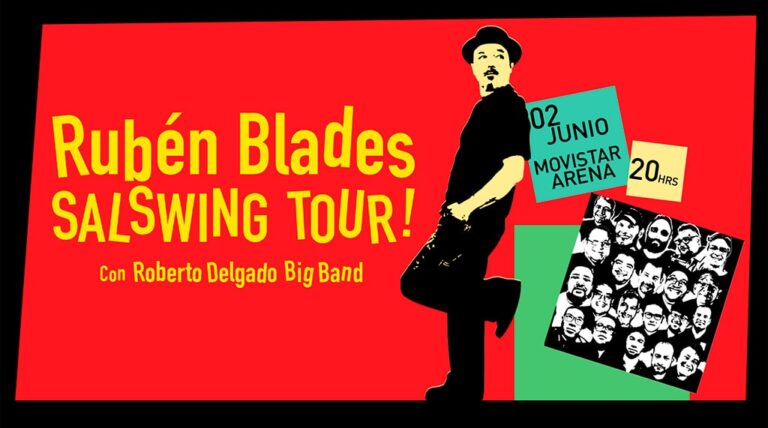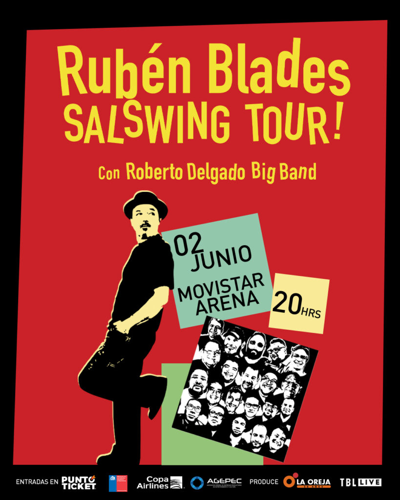 El multifacético músico, actor y activista panameño, Rubén Blades presentará su «SALSWING TOUR!», junto a la Roberto Delgado y Orquesta, de Panamá, el próximo 02 de junio, En el Movistar Arena de Santiago de Chile.