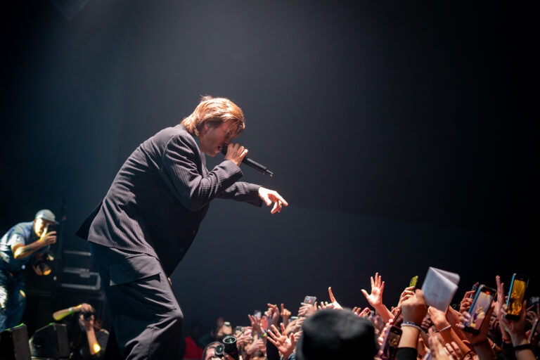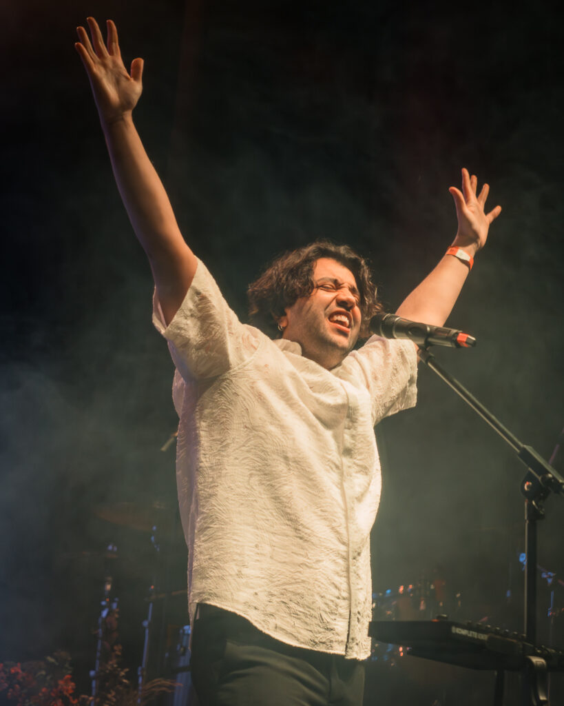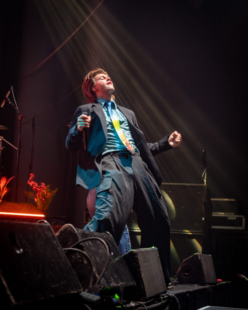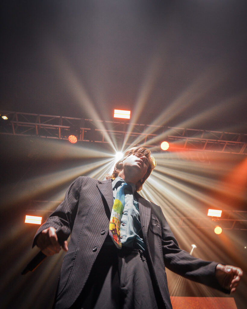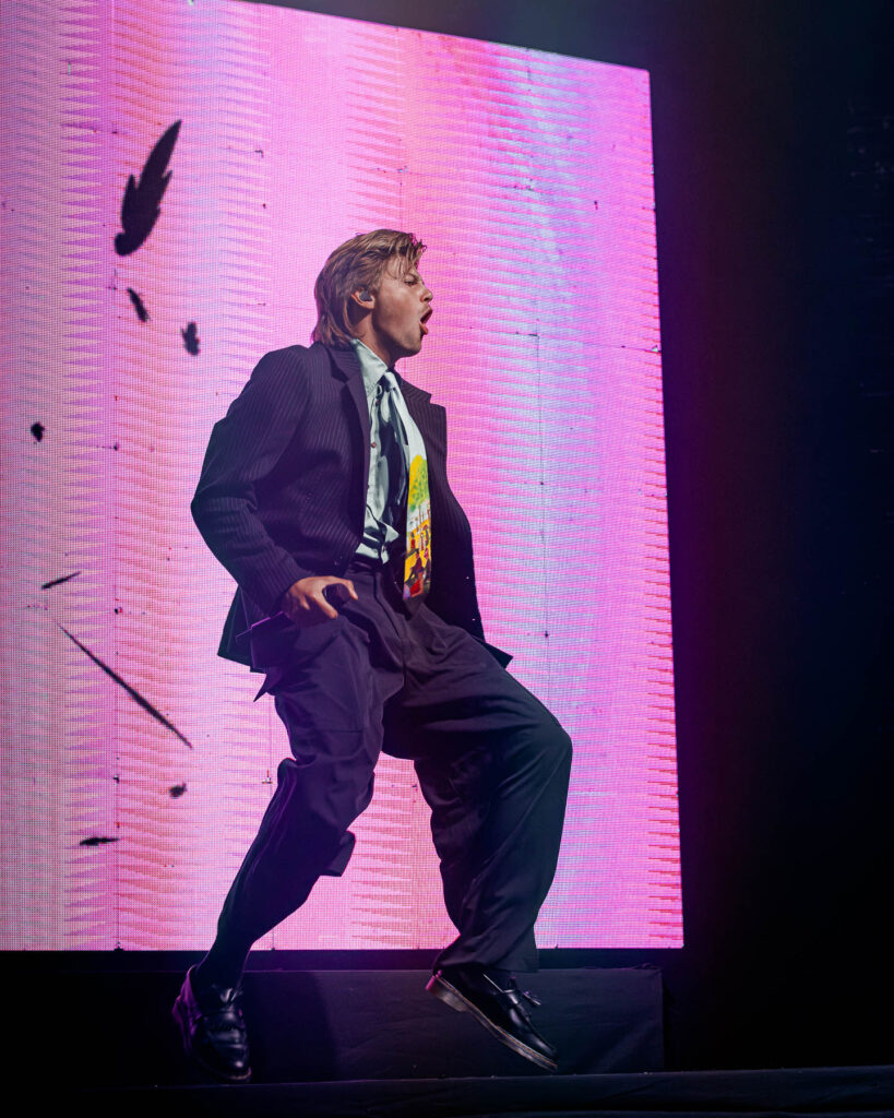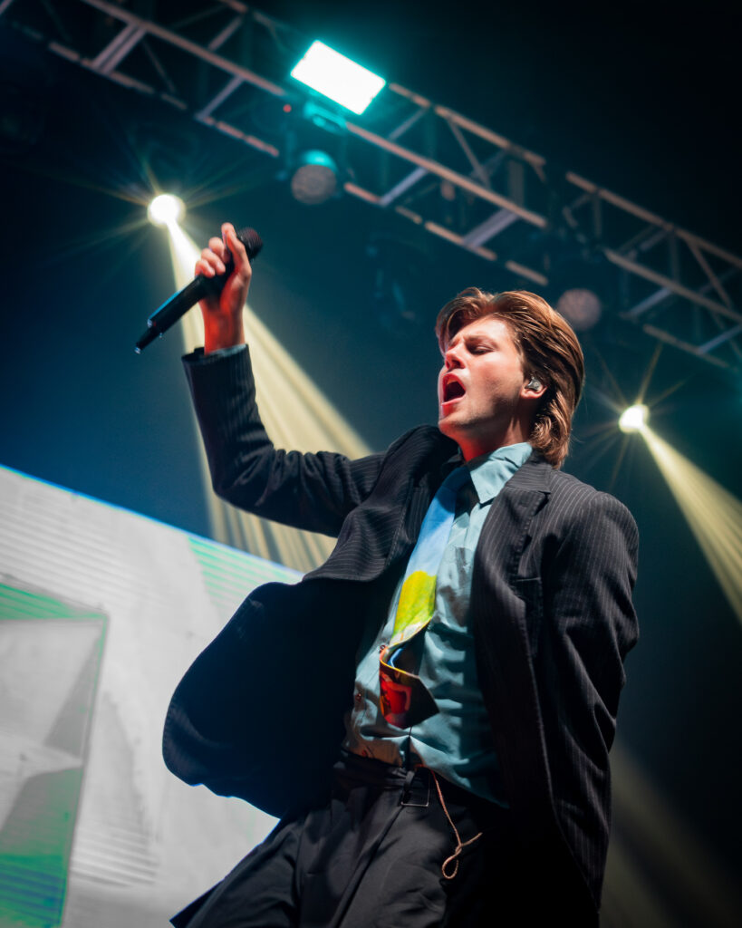 Ya pasada las 21:00, se apagan las luces y se muestran en la pantalla del fondo un pequeño video de introducción como si esto fuese una película, que en realidad es la llegada del cantante para que sonaran «GO ON WITHOUT ME» y «GROWING UP IS _____», parte de su álbum que da nombre a su gira, danzando con un enorme terno y provocando la euforia de las y los asistentes. En primera instancia, con una simple puesta escenográfica y acompañado de su guitarrista y baterista -que realizó un sólido trabajo-, se mostraba un buen uso de voz, bastante limpia y que no presentaba quejas dentro del recinto.