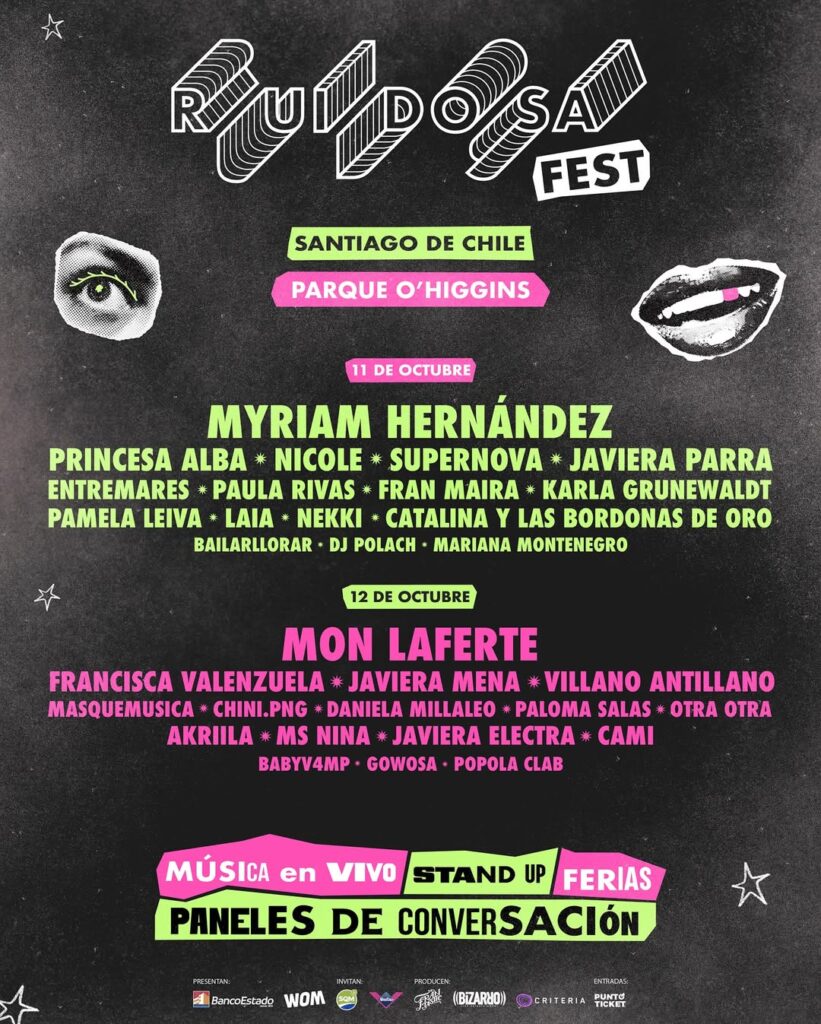 A través de una investigación en 2018, salió a la luz que los festivales de música en Chile no llegan ni siquiera al 15% de participación femenina en los carteles, y esto no se debe a una escasez de proyectos musicales liderados por mujeres, sino a otra muestra del sistema machista en el que vivimos. Ruidosa Fest llega una vez más para cambiar las reglas del juego como el primer festival de música en sudamérica consolidado únicamente por mujeres, este año celebrando su cuarta edición el 11 y 12 de Octubre en el Parque O’Higgins.