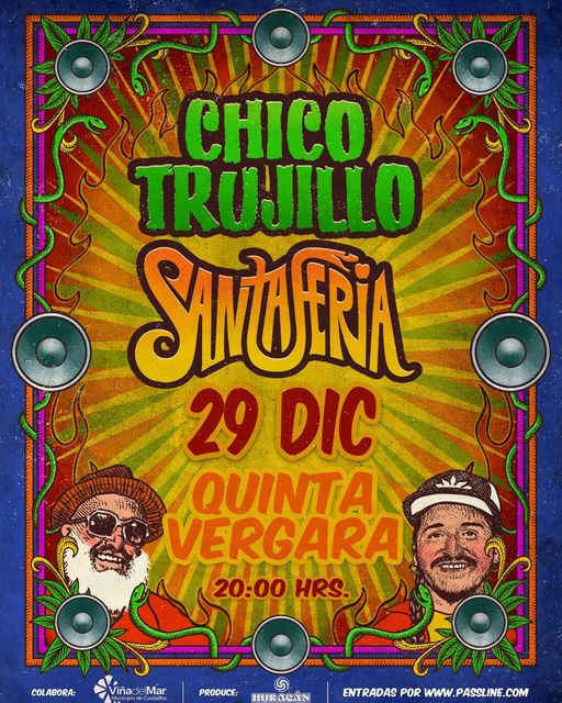 Ambos grupos se reunirán en la Quinta Vergara el 29 de diciembre, donde sonarán hits como «Loca», «La Escoba» y «Gran pecador» de Chico Trujillo y «Algún día volverás», «Sácate uno» y «Piensa en mi», los exitosos singles y clásicos de Santaferia. Veinticuatro años acumula Chico Trujillo ya de trayectoria; diecisiete suma por su lado Santaferia. Ambas bandas cuentan con un gran kilometraje en giras y escenarios, y ahora llenarán la Quinta de buena vibra y música, en un evento cuya primera preventa ya está agotada. Asegura tu ticket en Passline.