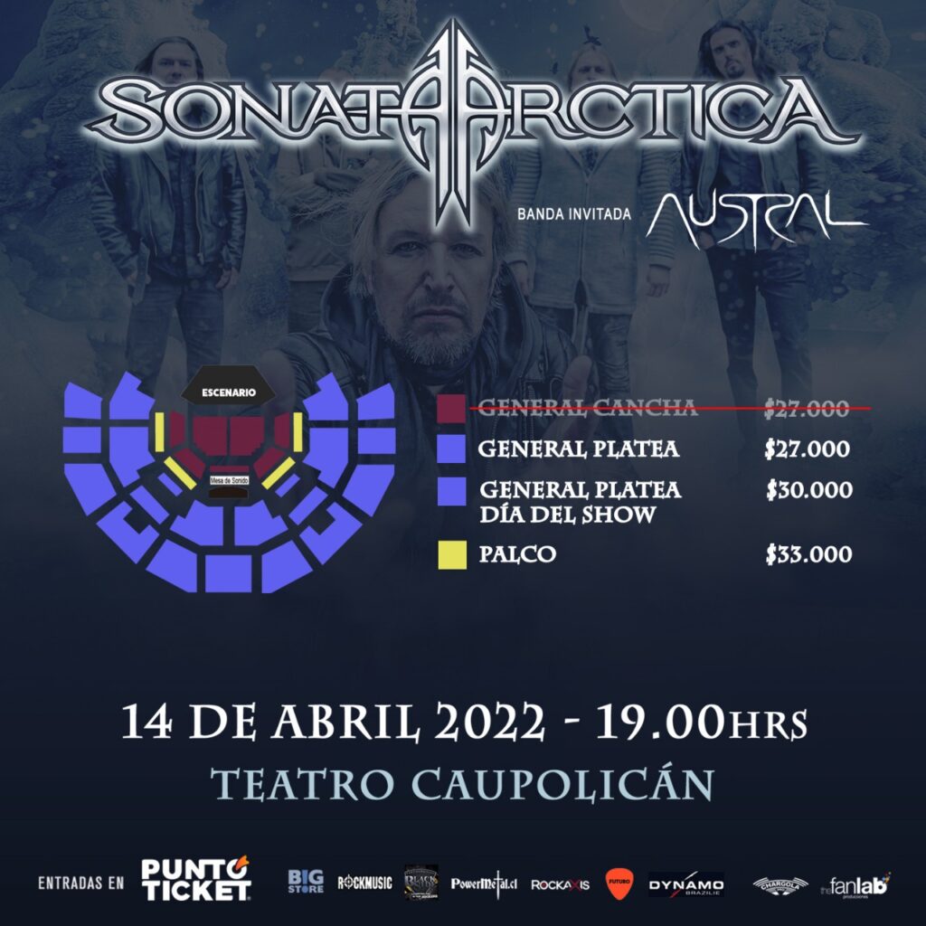¡Se terminó la espera! Sonata Arctica, una de las agrupaciones más afamadas del metal sinfónico se presentará el próximo jueves 14 de abril, en el Teatro Caupolicán. En esta ocasión, la apertura del show estará a cargo de Austral, banda chilena de metal étnico, en cuyo proyecto fusiona los instrumentos y sonidos indígenas con la música popular.