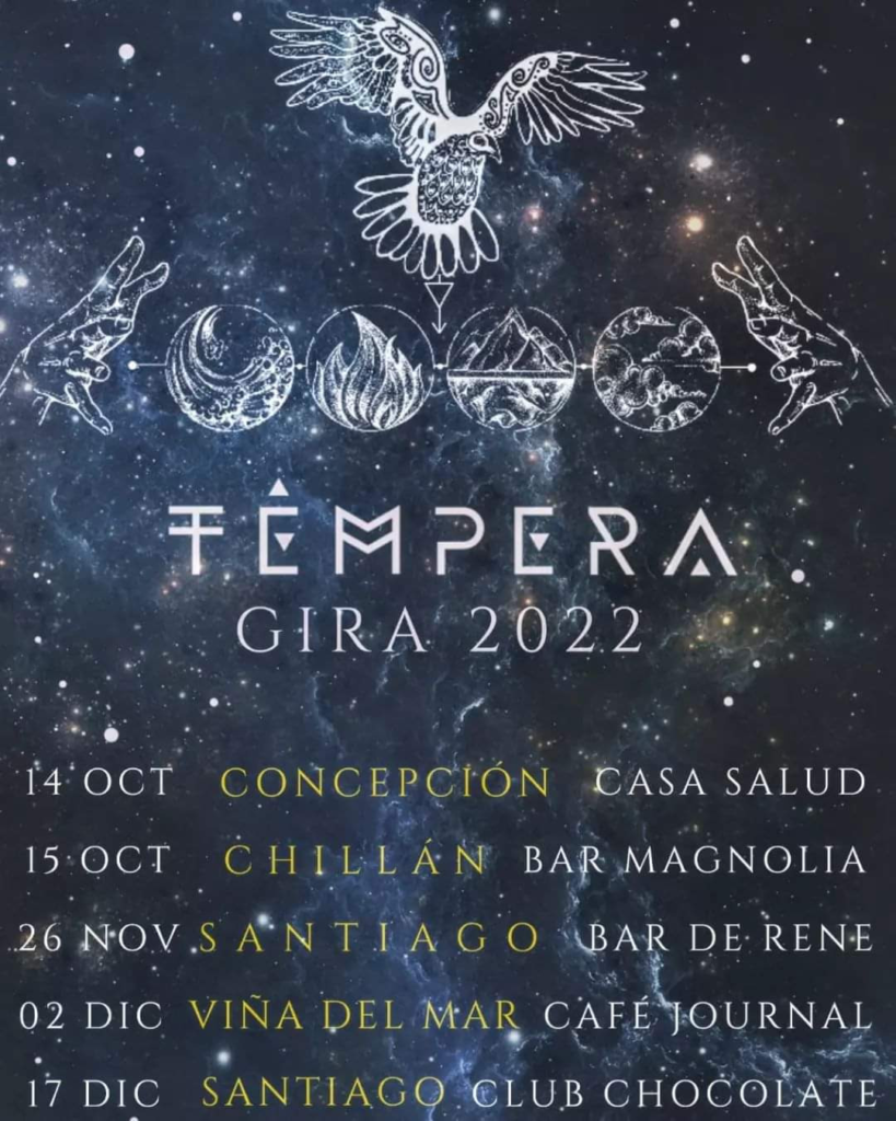 La banda nacional Témpera (@temperamusica) ha tenido un 2022 muy movido, con importantes conciertos en la ciudad de Santiago, mostrando principalmente el  en vivo su primer álbum de larga duración titulado “Elementos”, pasando por canciones de su primer EP, titulado “Témpera” e incluso entregando un anticipo de lo que será su próximo LP, que espera ver la luz en el 2023.