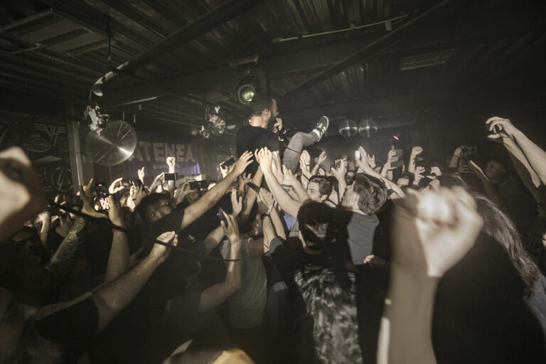 La sala estaba llena en su totalidad y el público fue un participante activo del espectáculo, ya que Rossetti, lo dio absolutamente todo, y no perdió oportunidad alguna para lanzarse sobre el público y cantar mientras hacía crowdsurfing. De hecho, en un momento del show llegó literalmente hasta el fondo de la sala donde estaba la mesa de sonido, y casi como si ya pudiera controlar los movimientos del público a su antojo, volvió en sólo unos segundos al escenario. La entrega y la euforia del frontman es de lo mejor que hemos visto este año, sin duda. Locura total. Locura que pronto contagiaría a sus compañeros, ya que vimos que el mismo vocalista instaba a los demás miembros de la banda a hacer lo mismo. Y bueno, así terminó siendo… The Ocean es una banda con una entrega que pocas veces podemos presenciar. Sus caras de felicidad al tocar y ver cómo el público reaccionaba, no tiene precio. Hubo una conexión especial, conexión que la misma banda permite por la cercanía que producen con la gente.