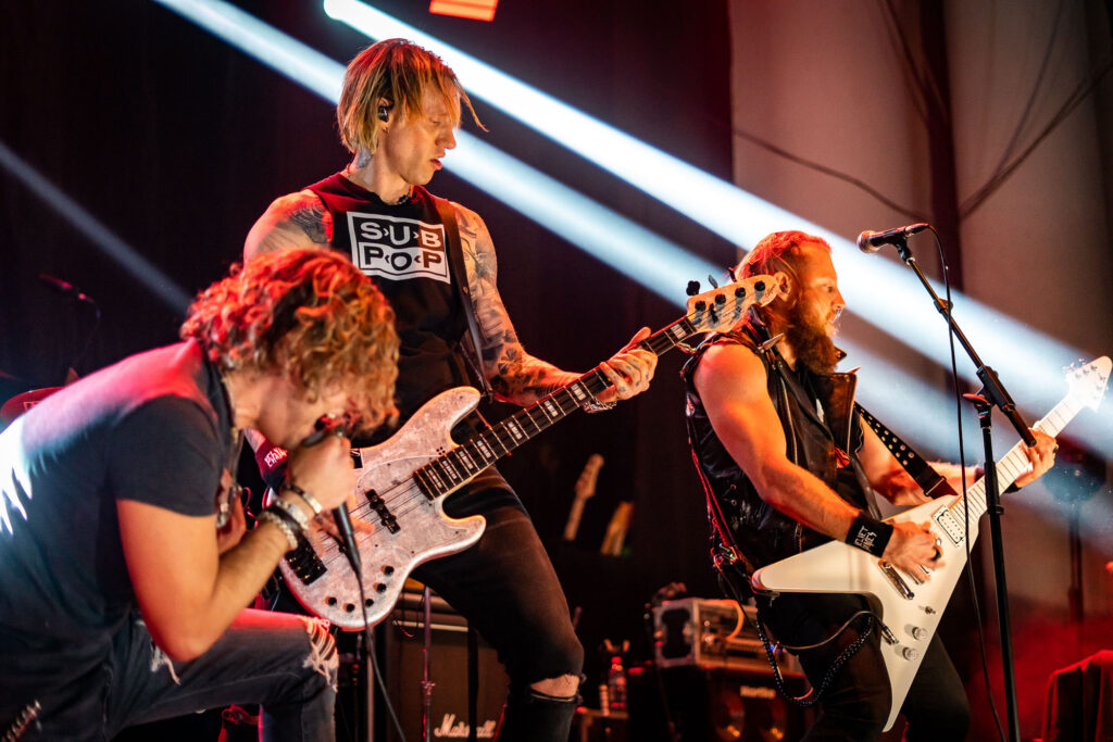 Como número de apertura, estuvo la agrupación originaria de Las Vegas Velvet Chains, que tiene la llamativa alineación de dos chilenos en el conjunto, el vocalista Ro Viper y el bajista Nils Goldschmidt. Presentando material de su único álbum «Icarus» (2021) y su EP «Morbid Dreams» (2022) donde su material es derechamente Hard Rock que mezcla parte de la vieja escuela con el sonido moderno del género, y que la conexión fue recíproca al tener al frente a dos nacidos en el país logrando cosas en otras tierras, siendo para ellos «un sueño hecho realidad estar acá con nuestra gente«. Desde agarrar el fluir de los asistentes con sus composiciones, agregando un cover de «Suspicious Mind» de Elvis Presley y una canción nueva estrenada exclusivamente en este show -donde grabaron su versión estudio en menos de dos semanas atrás-, fue una presentación acorde, llena de guitarras ruidosas y una interpretación vocal que se agradece su presencia y buscan esparcir su música teniendo pocos años de actividad.