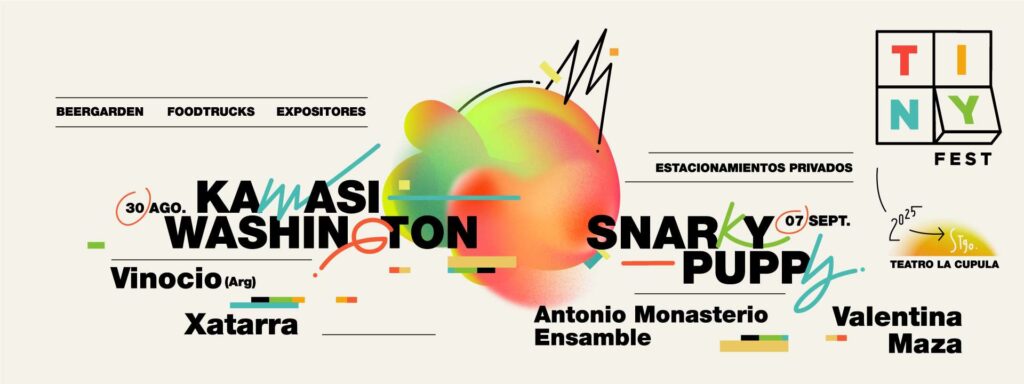 La nueva edición de Tiny Fest vuelve más potente que nunca, encabezada por Kamasi Washington el 30 de agosto y Snarky Puppy el 7 de septiembre, dos noches imperdibles en el Teatro La Cúpula del Parque O’Higgins. Esta gran fiesta del jazz fusión regresa para encender los ánimos y conectar profundamente con su público melómano. Además contará con un beergarden de Kross, food trucks y merchandising oficial, brindando una experiencia completa tanto dentro como fuera del escenario.