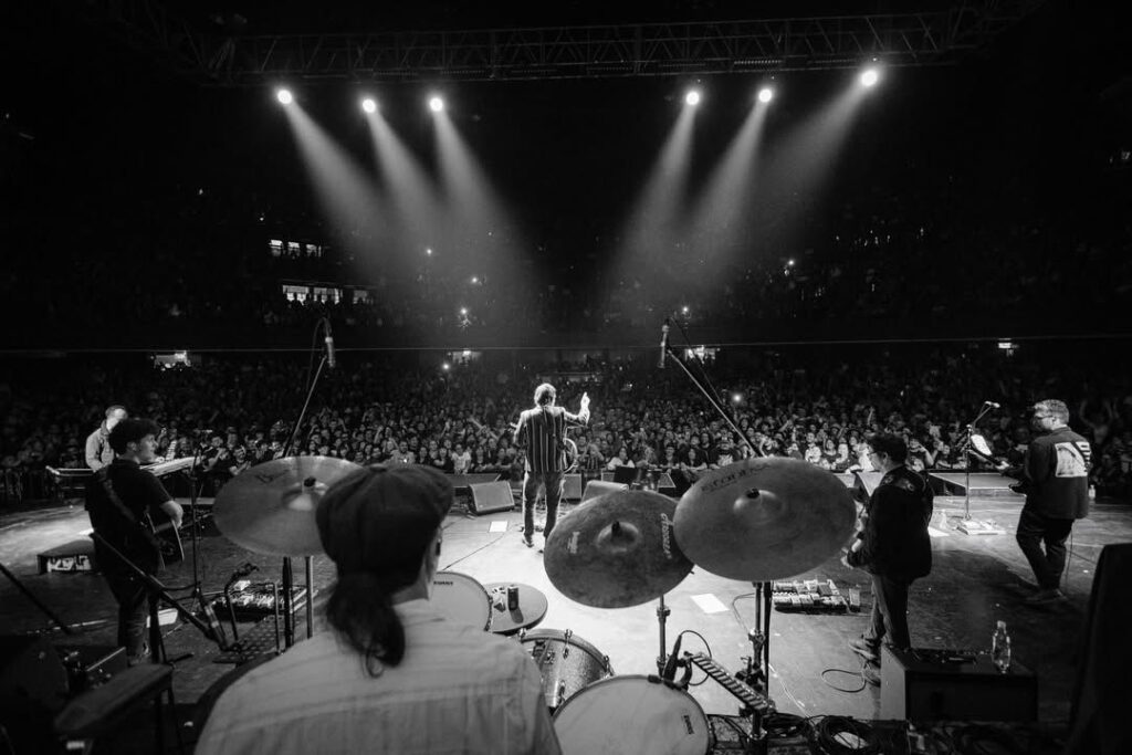 La mezcla orgánica y la mescolanza de texturas, eléctricas, de percusión, teclados y vientos, sostenía la presentación de la numerosa banda que siguió con “Turista”, “Procuro olvidarte” y “Regresa”, que fue cantada en buena parte con un Macha sentado en la orilla del escenario muy cerca del público.