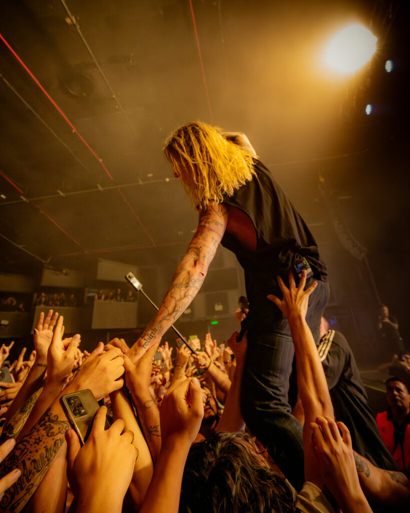 Un inicio potente, pero algo contenido por parte del público, con «Take a Breath» de su último trabajo «Voyeurist» (2022), pero que fue la antesala de una serie de hits. Canciones que pavimentaron su camino a ser una de las bandas insignes del Post Hardcore y el Metalcore. «Writing on the Walls» seguida de «In Regards to Myself» que desataron la locura del teatro y que empezaron a mostrar las credenciales de la banda.